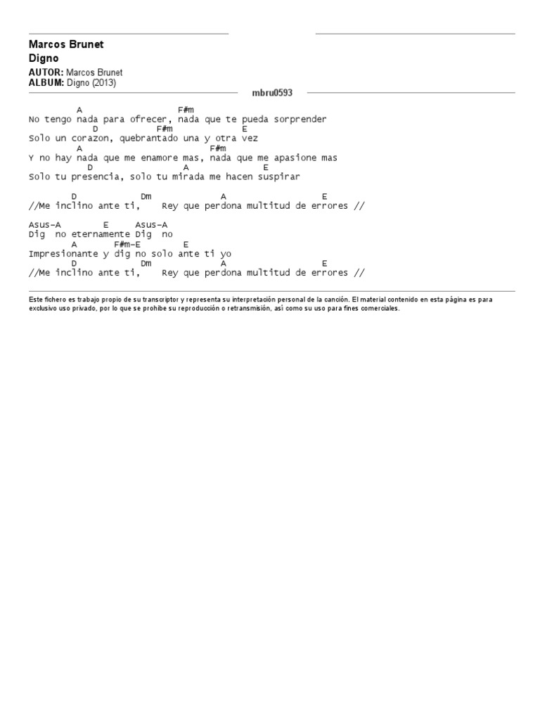 Digno Marcos Brunet Yvonne Munoz Partitura Cristiana Piano Latras Melodias Acordes Payhip A f#m no tengo nada para ofrecer, nada que te pueda sorprender.