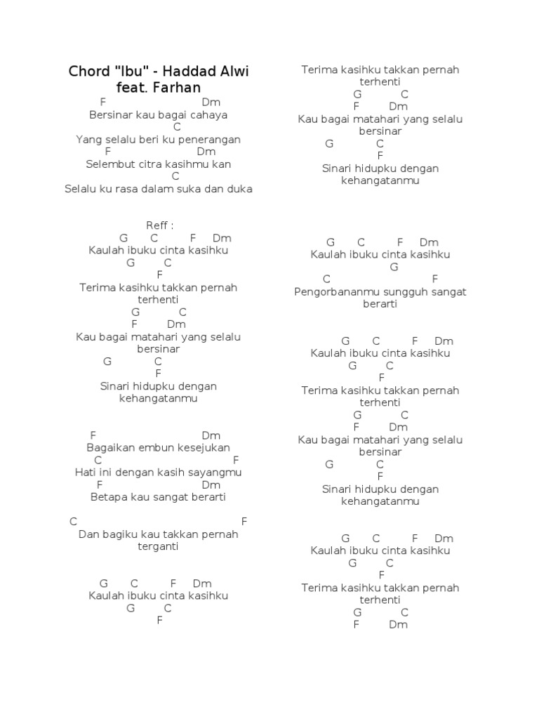 Lagu Kaulah Ibuku Cinta Kasihku / Kaulah ibuku cinta kasihku terima kasihku takkan pernah terhenti kau bagai matahari yang selalu bersinar sinari hidupku dengan kehangatanmu sinari hidupku dengan kehangatanmu.