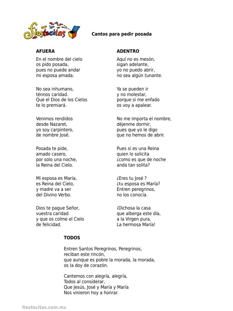 Letra Para Pedir Posada / En el nombre del cielo os pido posada, pues no puede andar mi esposa amada.