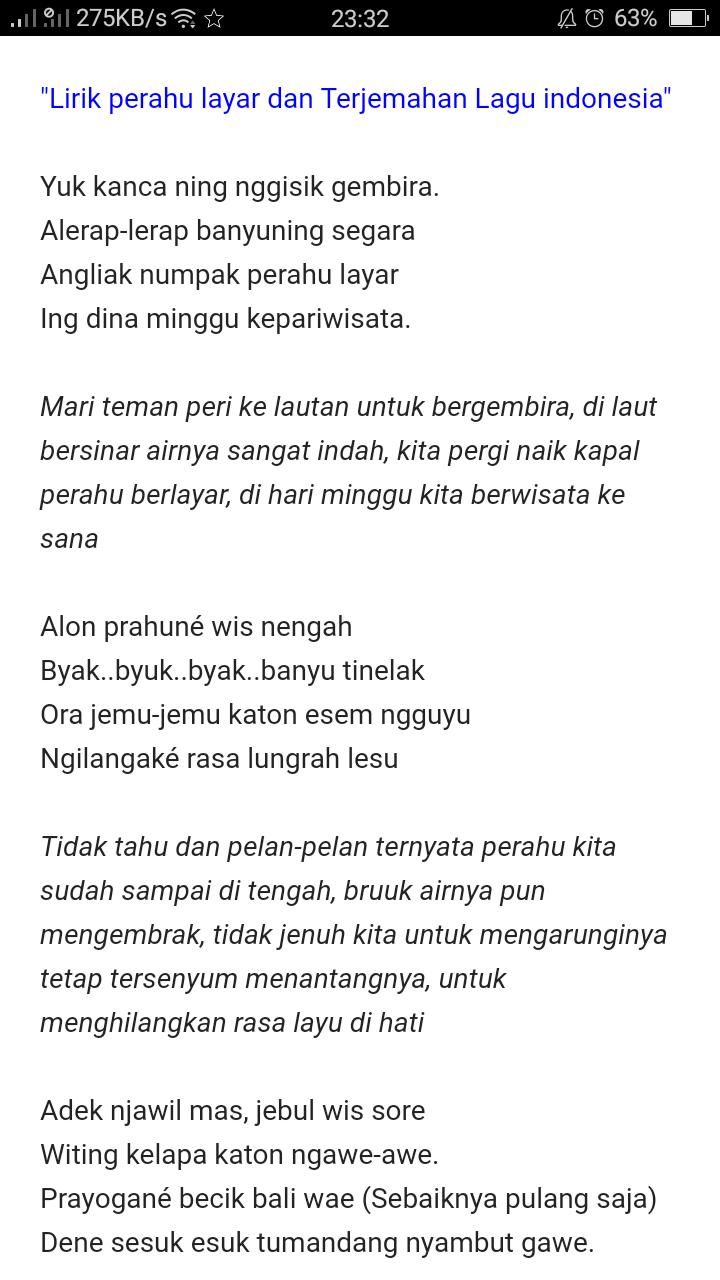 Lirik Lagu Numpak Perahu Layar / Prau layar atau perahu layar adalah lagu jawa yang berasal dari daerah jawa tengah.