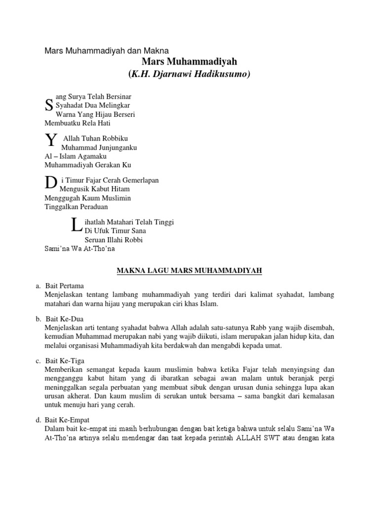 Lirik Mars Muhammadiyah : Sang surya tetap bersinar syahadat dua melingkar warna yang hijau berseri membuatku rela hati.
