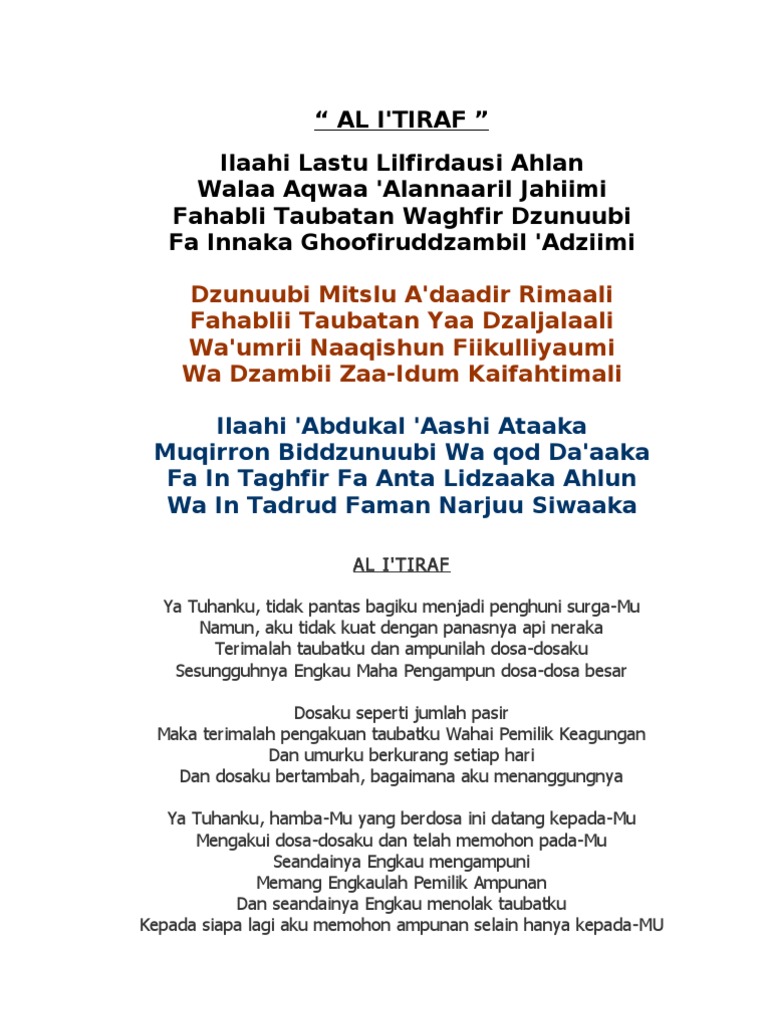 Lirik Sholawat Al I'tirof Bahasa Indonesia - Lirik sebuah pengakuan (al i'tiraf) berbahasa arab.