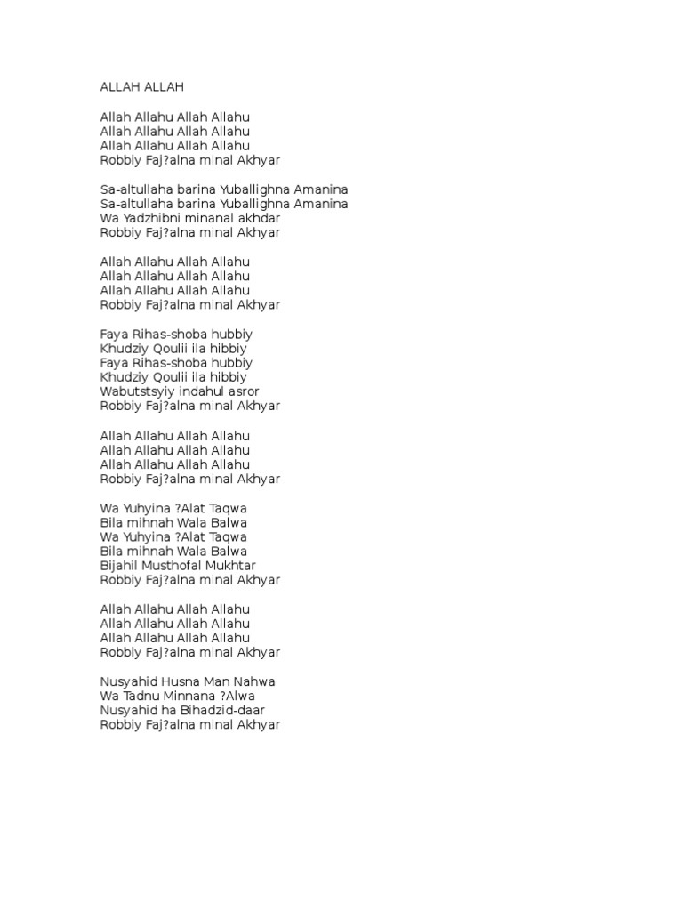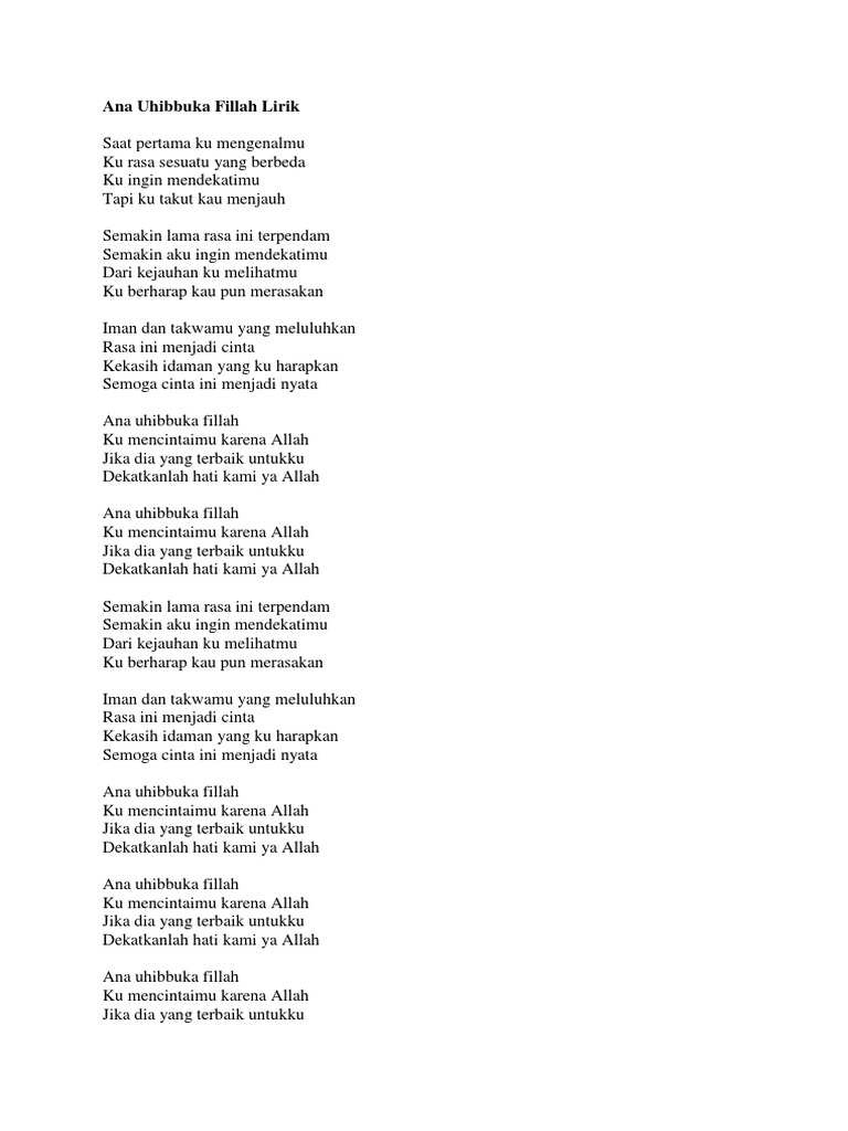 Lirik Uhibbuki : Nabi shallallahu 'alaihi wa sallam.