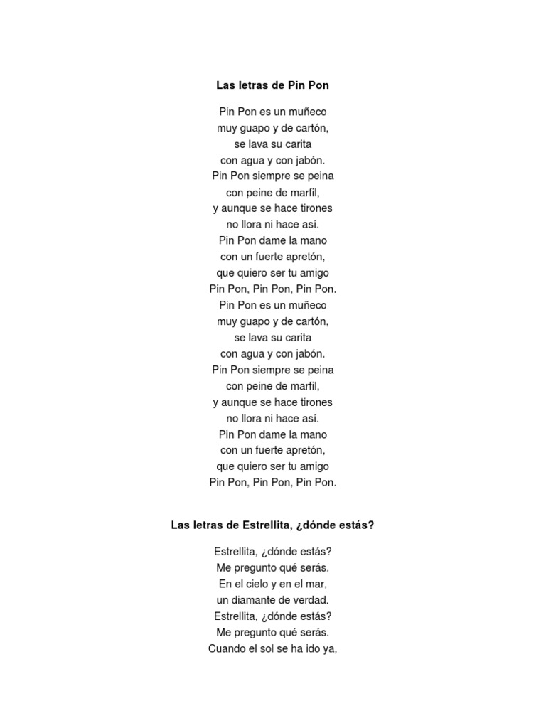 Pin Pon Es Un Muñeco Lyrics : Pin pon es un muñeco, muy guapo y de cartón, de cartón, se lava la carita con agua y con jabón, con jabón.