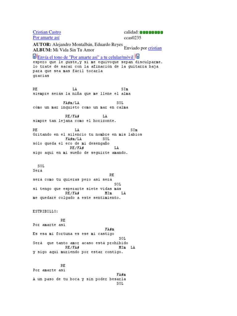 Por Amarte Asi Letra Cristian Castro - Por amarte así cristian castro mi vida sin tu amor 1999 letra: