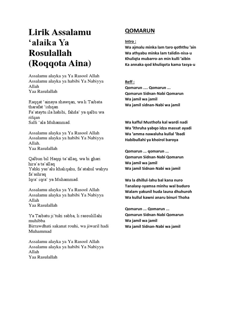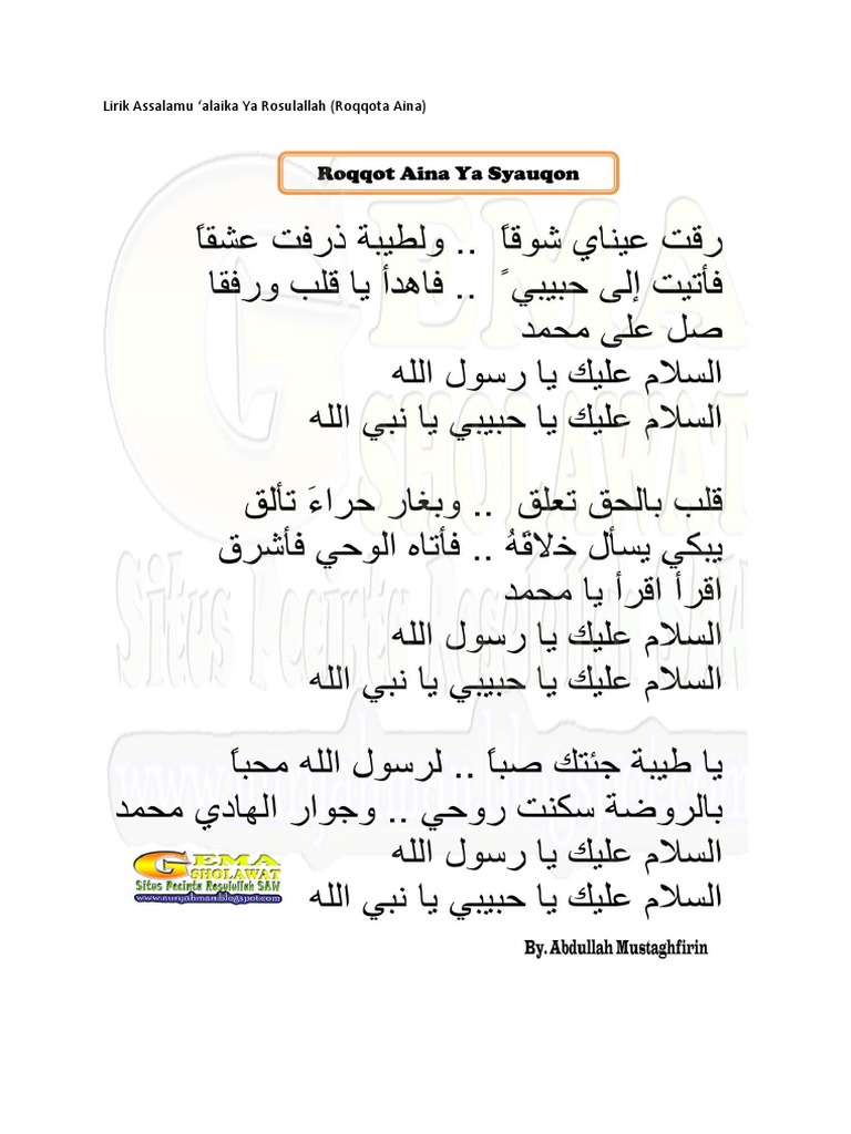 Roqqot Aina Lirik - Assalamualaika ya rasulullah roqqot aina sholawat termerdu.