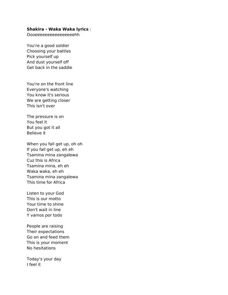 Saminamina Song Lyrics / Main song words are tsamina mina zangalewa anawa a a this time for africa tsamina mina, eh eh waka waka.