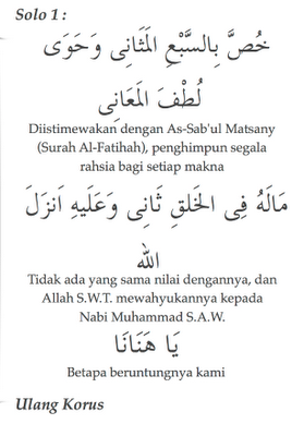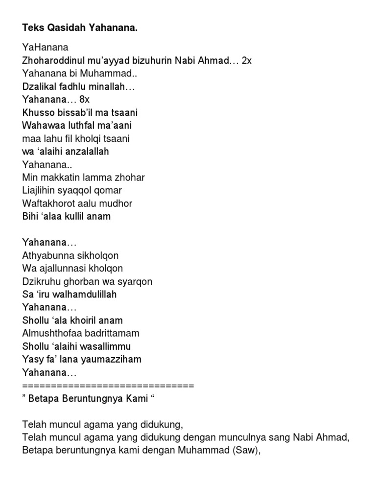 Teks Ya Hanana - Khuso bissab'il matsani wahawa luthfal ma'anii maalahu fil kholqi tsaanii wa'alaihi anzalalloh.