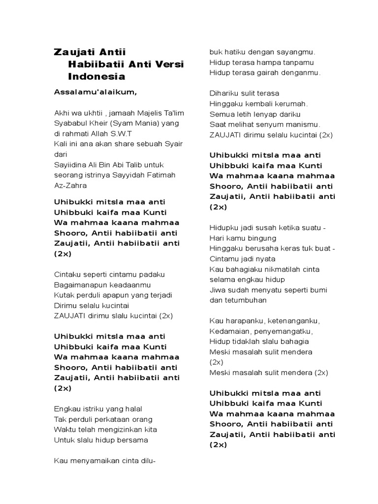 Teks Zaujati / Jiwa sudah menyatu seperti bumi kutak perduli apapun yang terjadi dan tetumbuhan dirimu selalu kucintai zaujati dirimu slalu kucintai (2x) kau harapanku.