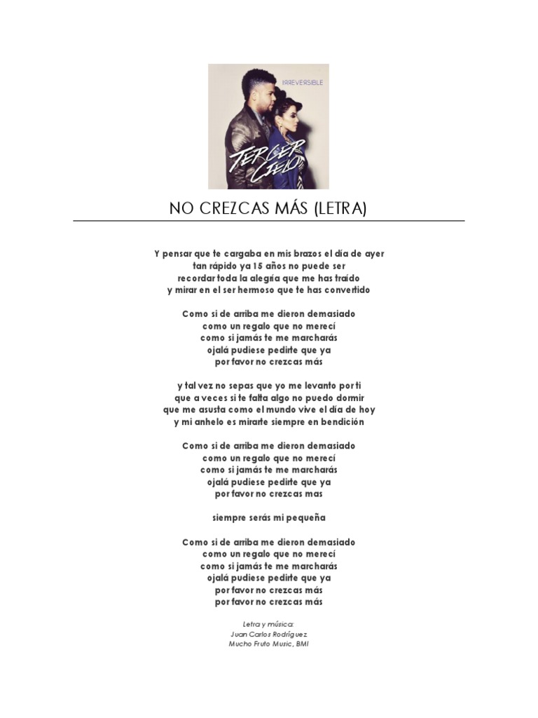 Tercer Cielo No Crezcas Mas / 04:21 del álbum irreversible suscribete a este canal.