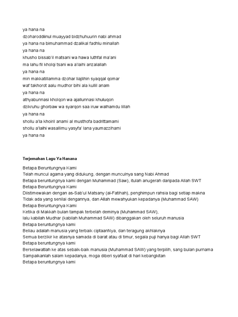 Yahanana Lirik / Zhoharoddinul muayyad bizuhurin nabi ah.